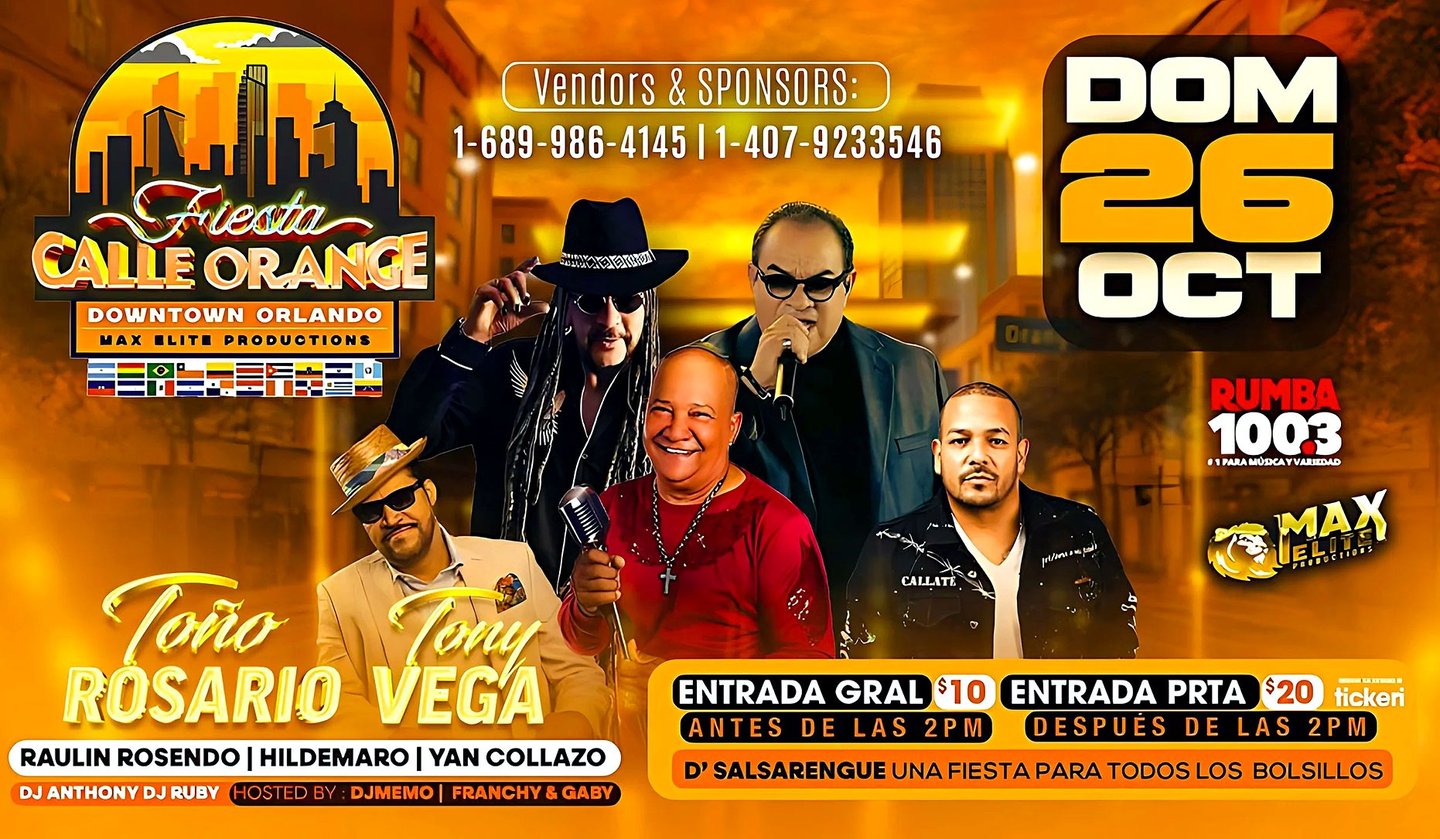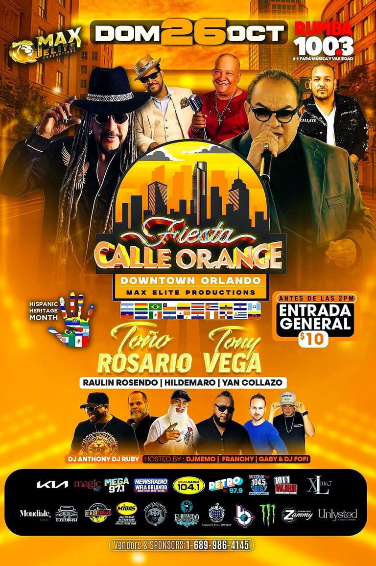 Fiesta Calle Orange takes over Downtown Orlando this Sunday, October 26th with an explosive Main Stage lineup: