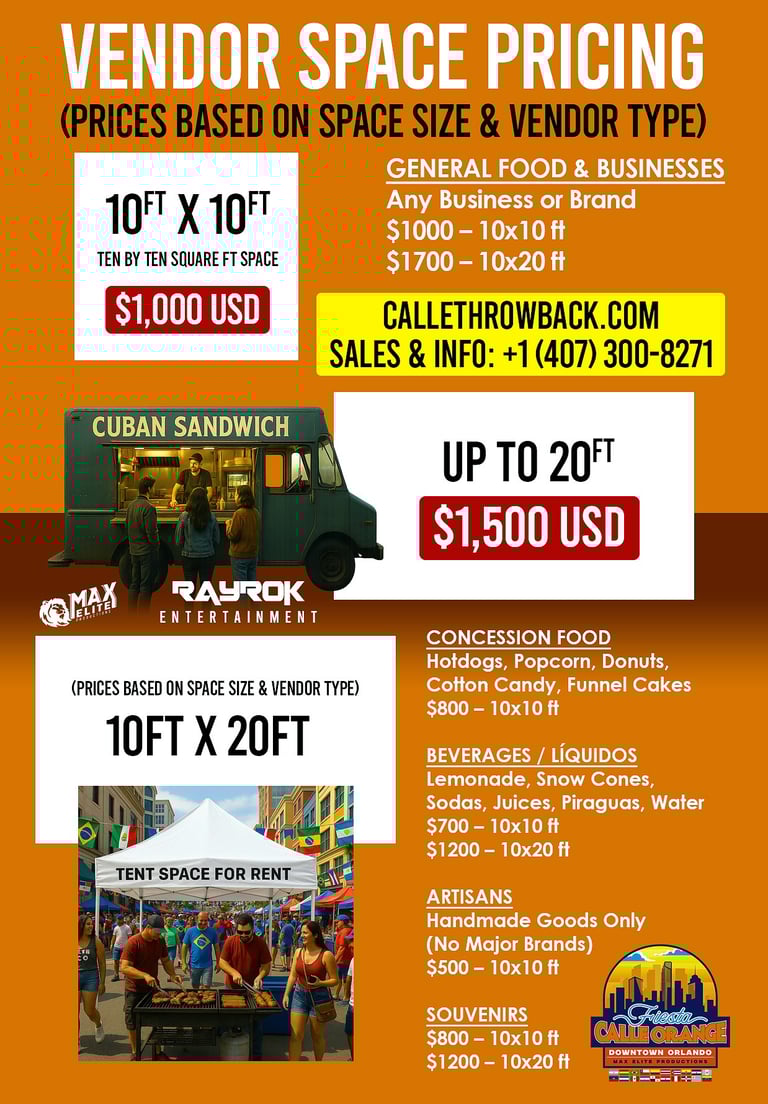 🛍️ Vendors: Secure your tent space now—call Ray Santiago at 407.300.8271. Space is limited!